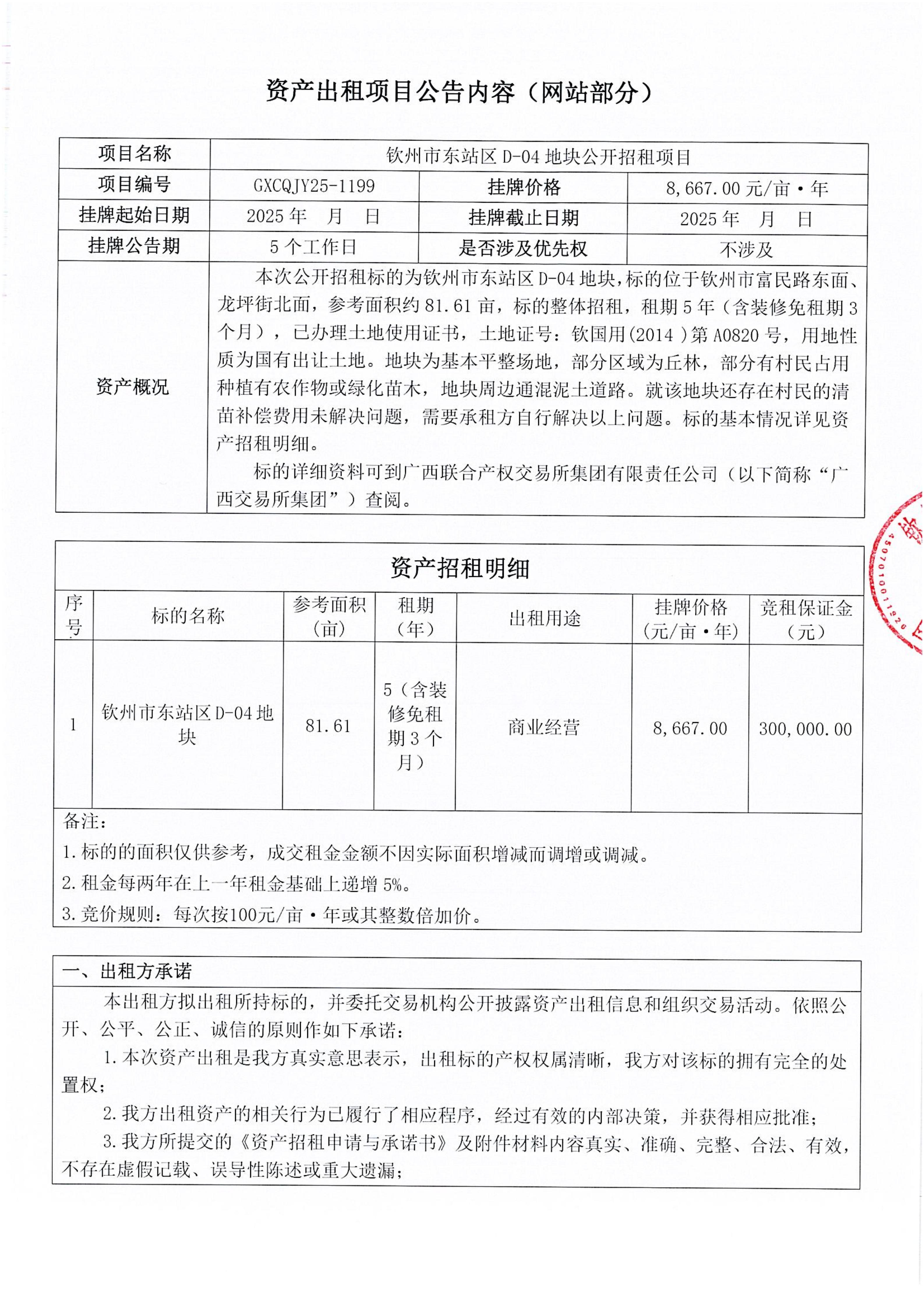 欽州市安惠一園幼兒園資產出租項目公告內容(公共資源)