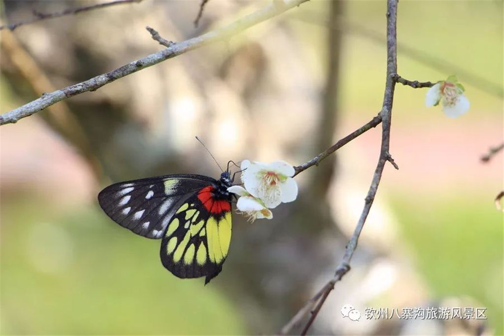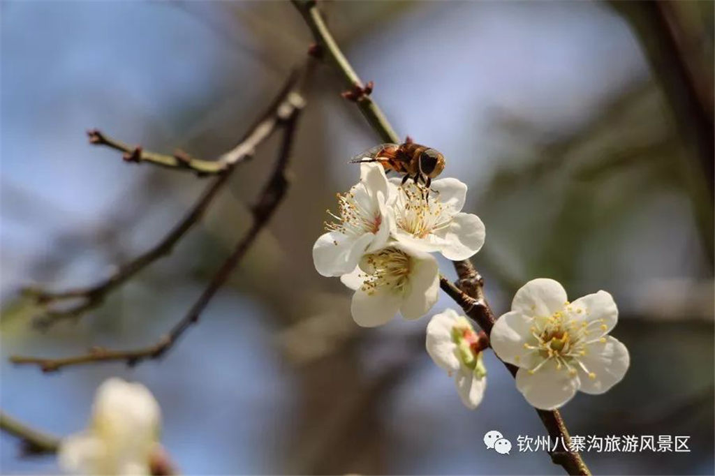 雖說(shuō)梅花香自苦寒來(lái),但陽(yáng)光下的梅花更是吸引蝴蝶、蜜蜂的到來(lái)。一朵朵白色的小花在藍(lán)天和綠色的植物相襯下,相映成趣、美景如畫(huà)!