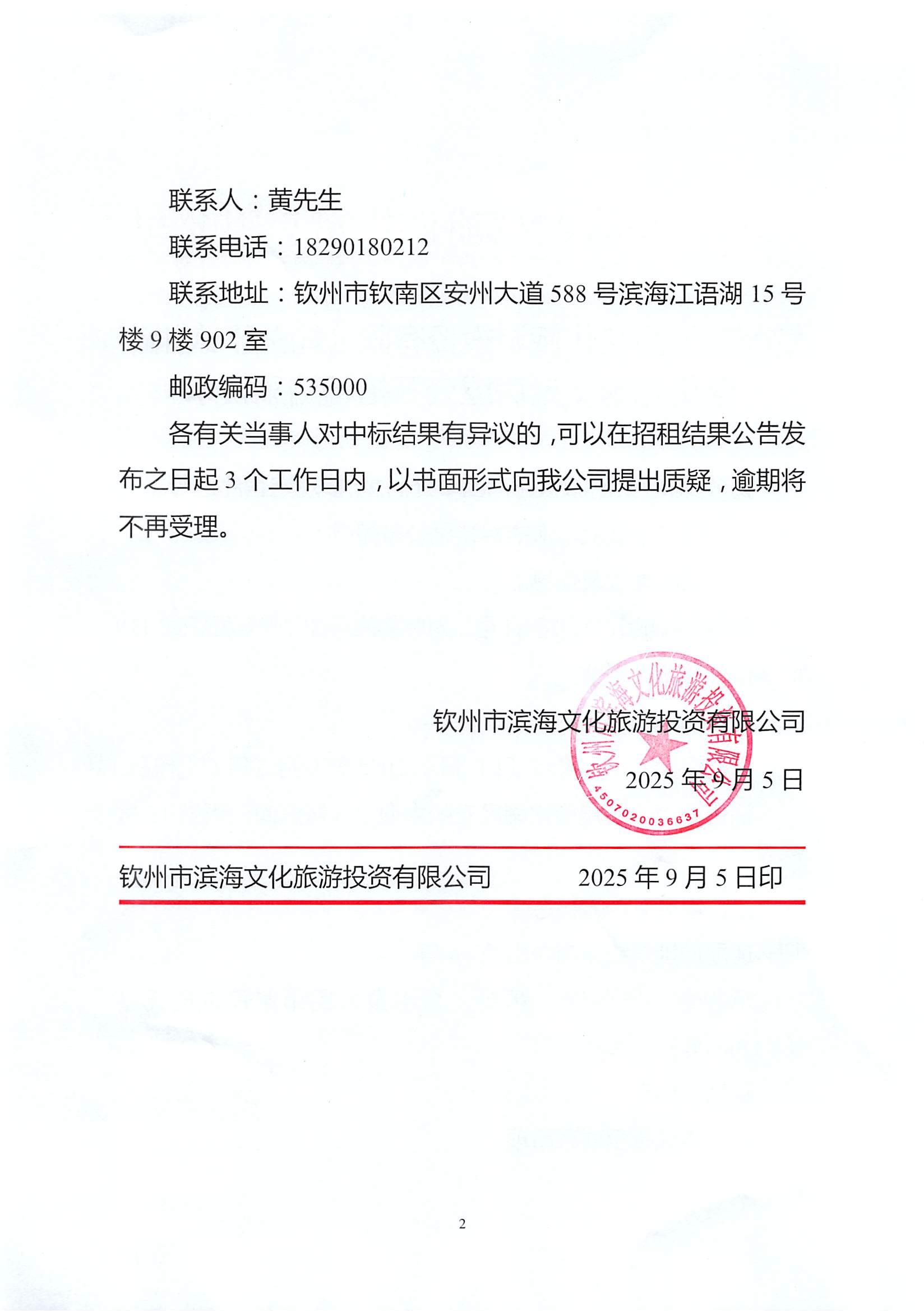 欽州市濱海文化旅游投資有限公司關(guān)于欽州市老街范圍1處房屋公開(kāi)招租結(jié)果公示