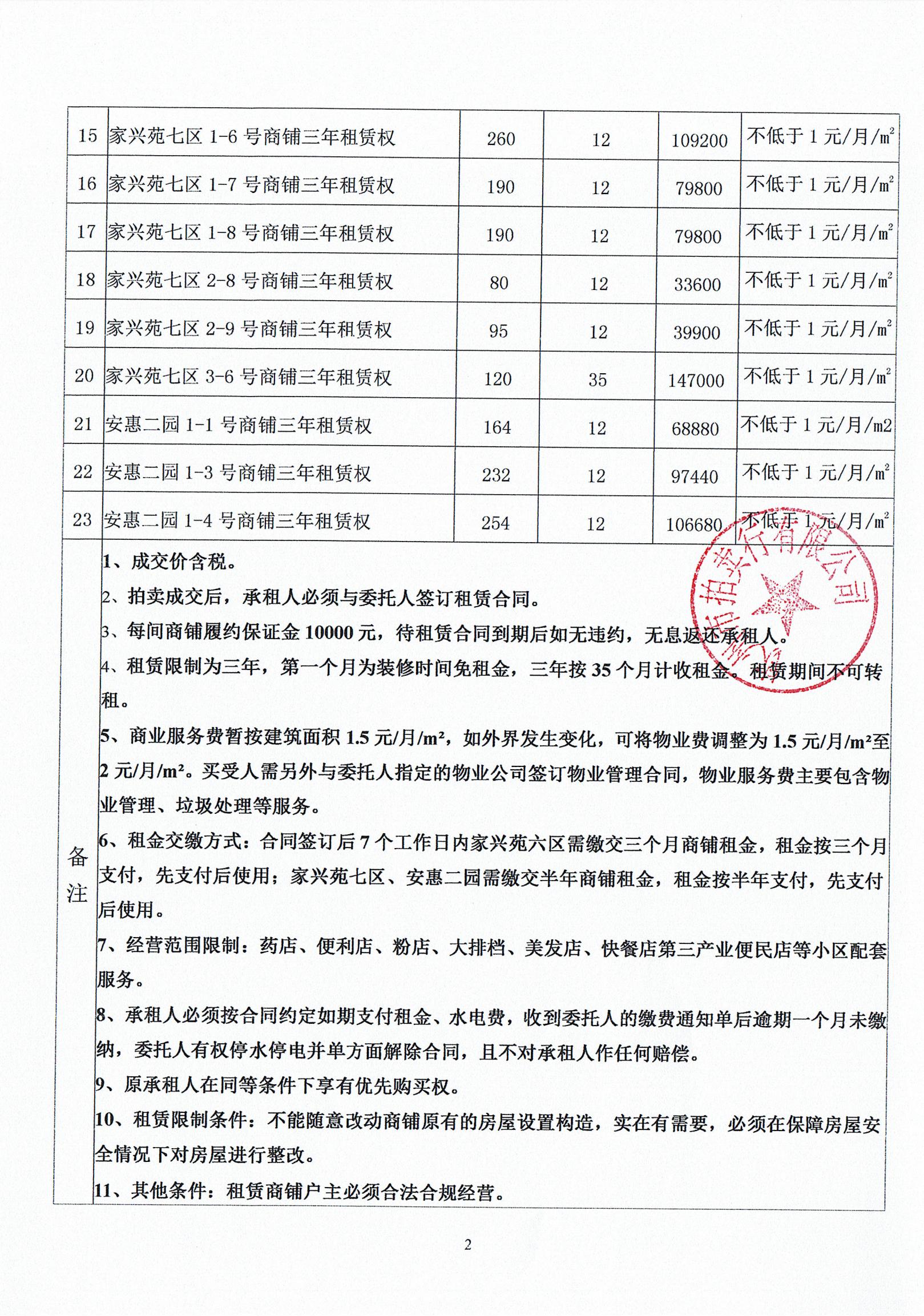 (家興苑六區(qū)、七區(qū)、安惠二園)商鋪?zhàn)赓U權(quán)拍賣(mài)公告