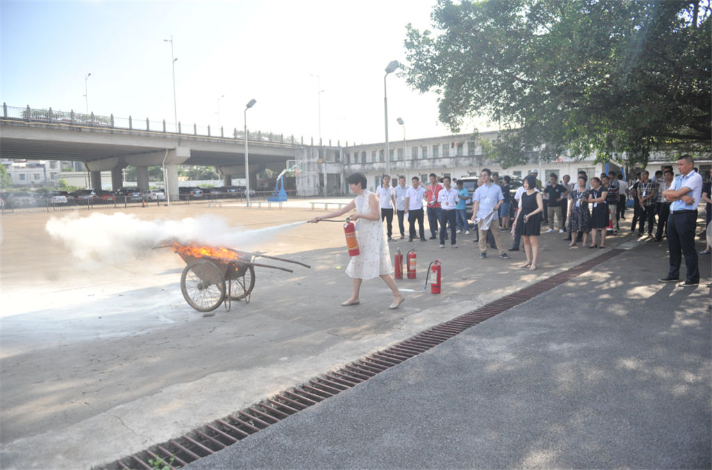 集團(tuán)人員練習(xí)使用滅火器滅火