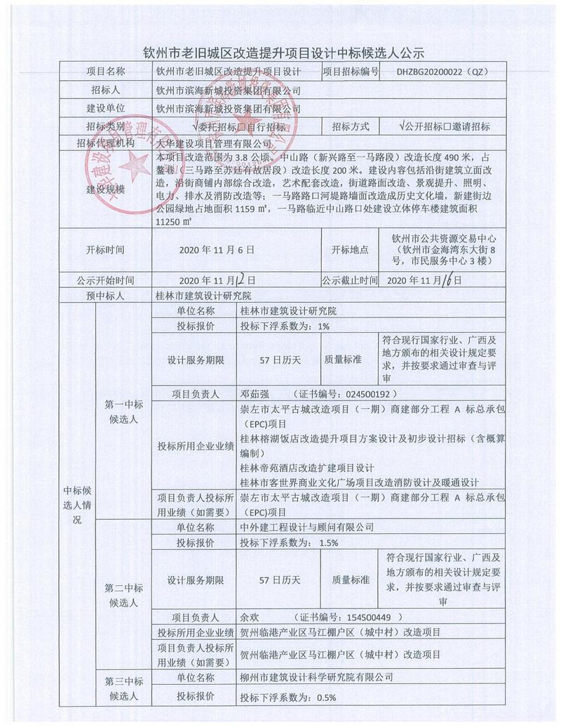 項(xiàng)目名稱 欽州市中山路、占鰲巷旅游開發(fā)項(xiàng)目(一期)設(shè)計(jì) 項(xiàng)目招標(biāo)編號(hào) DHZBG20200008(QZ) 代建單位(如有) / 建設(shè)單位 欽州市濱海新城投資集團(tuán)有限公司 招標(biāo)類別 ...