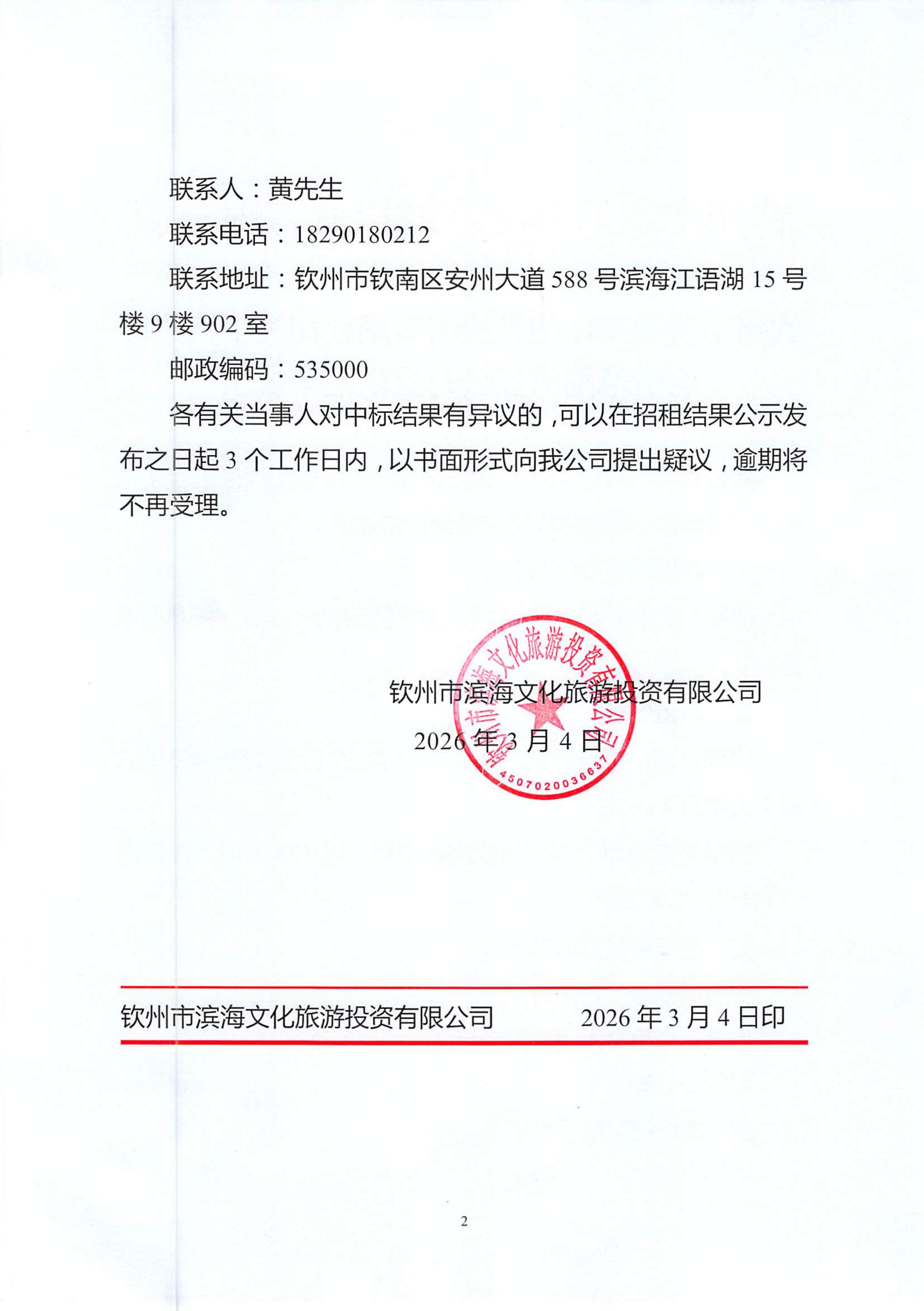 欽州市濱海文化旅游投資有限公司關(guān)于欽州市老街范圍房屋公開(kāi)招租結(jié)果公示