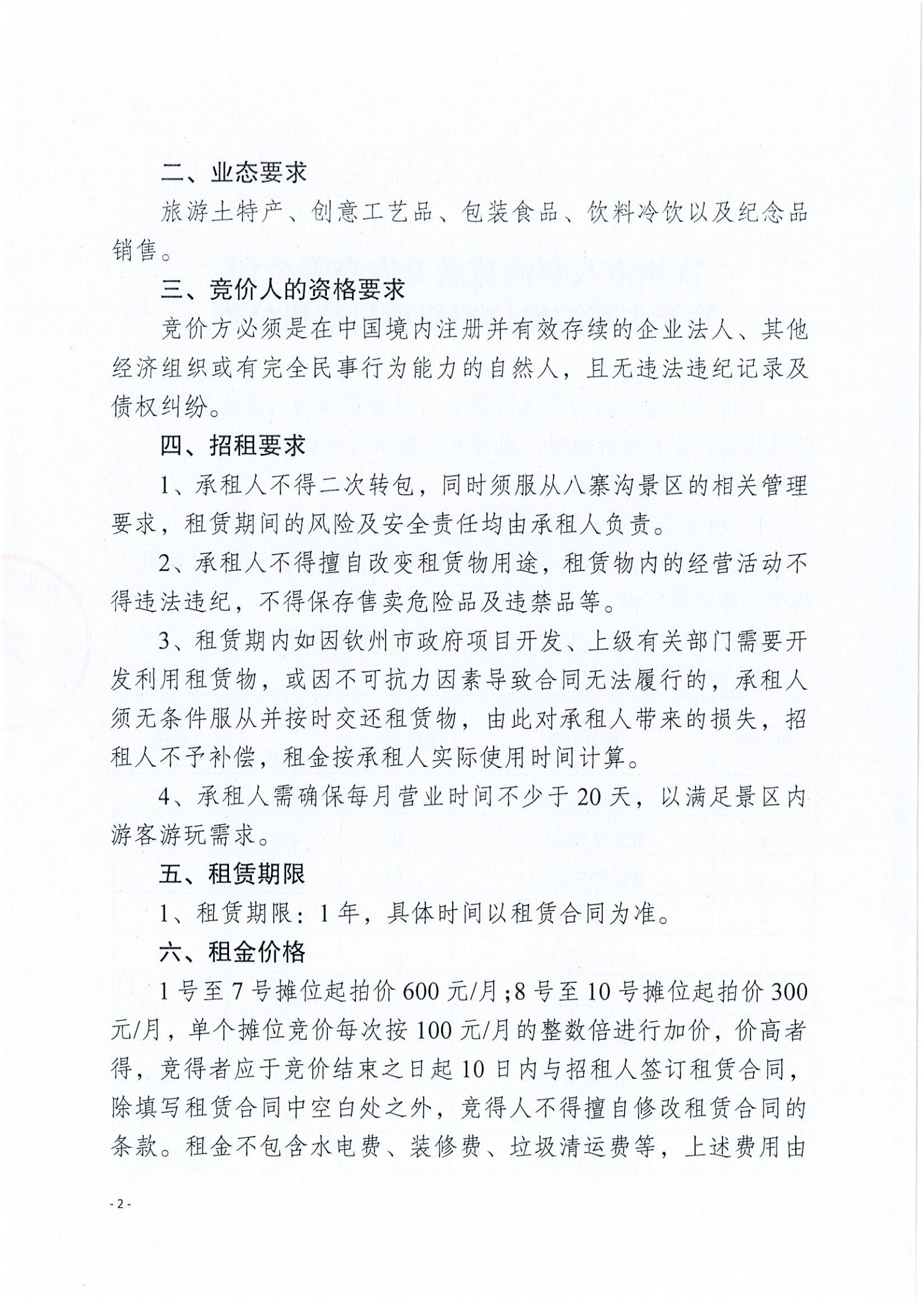 關(guān)于八寨溝攤位招租項(xiàng)目招租公告