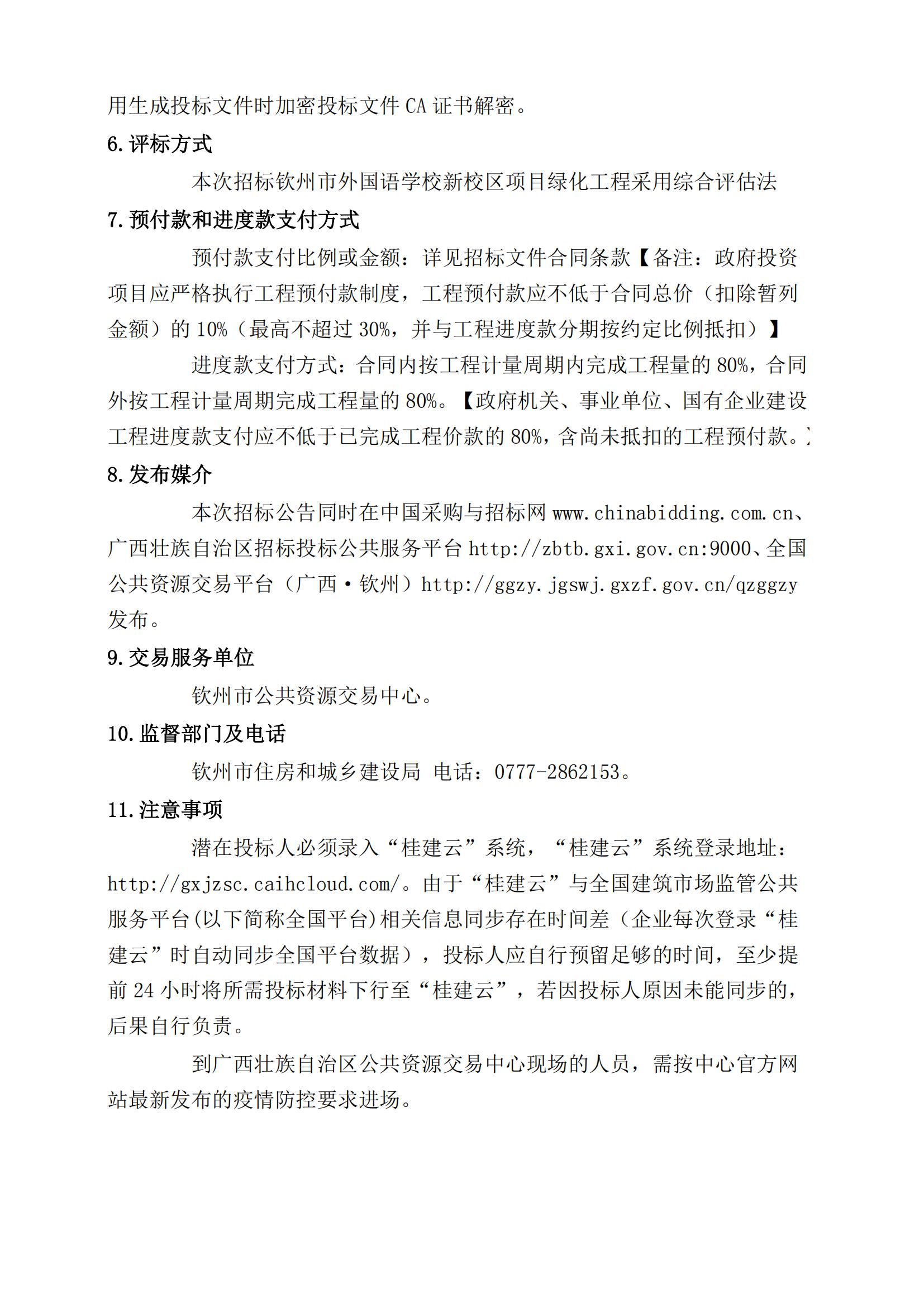 欽州市外國語學(xué)校新校區(qū)項(xiàng)目綠化工程施工招標(biāo)公告