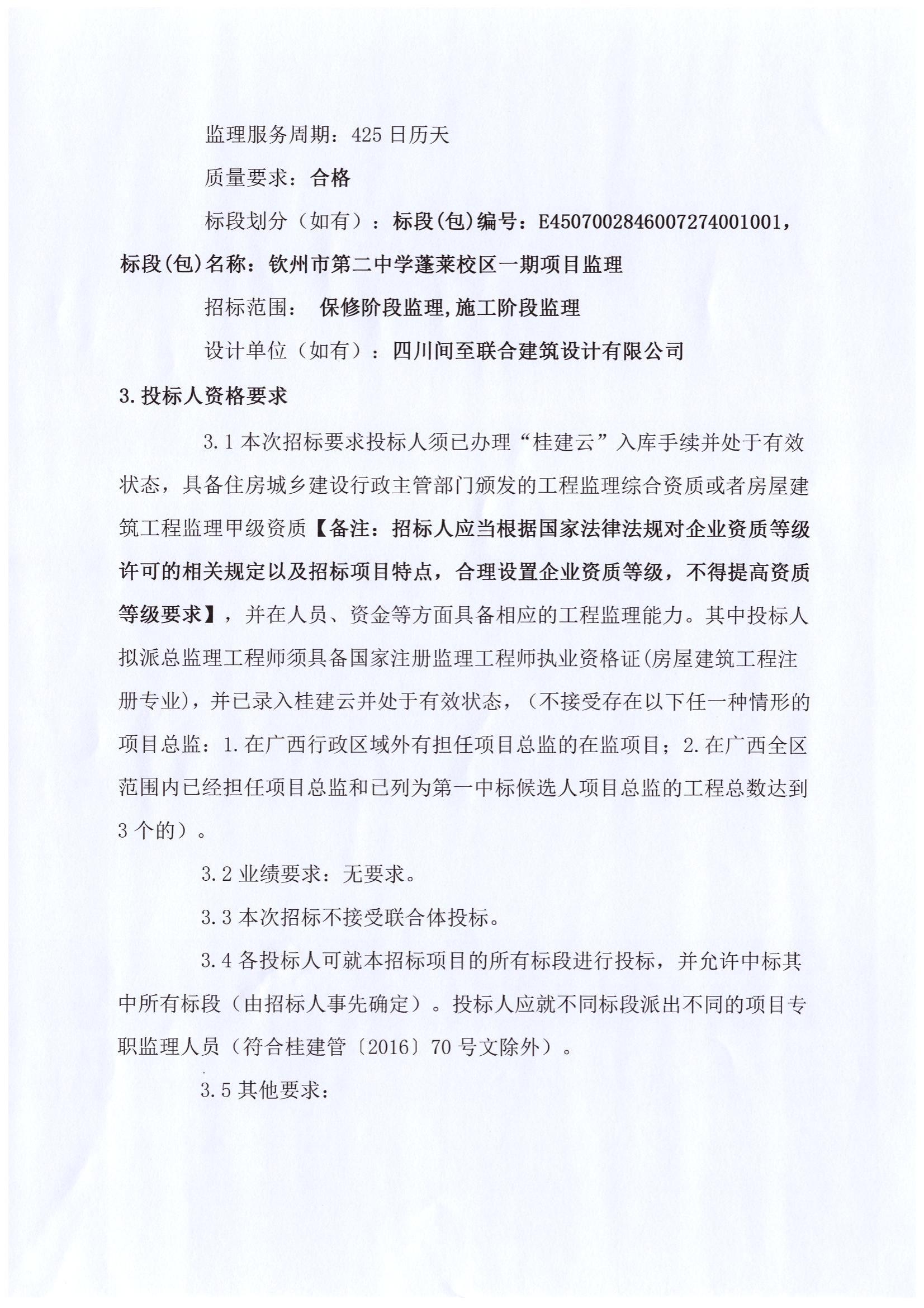 欽州市第二中學(xué)蓬萊校區(qū)一期項目監(jiān)理招標公告